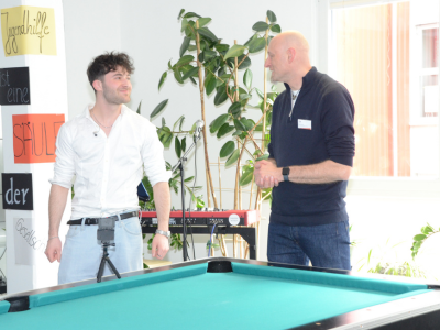 Ein besonderer Moment der Feier war der musikalische Beitrag eines jungen Mannes, der selbst einmal Klient der Ambulanten Jugendhilfe Durlach gewesen ist. Ein sichtbares Zeichen dafür, wie langfristig sozialpädagogische Beziehungsarbeit wirken kann.