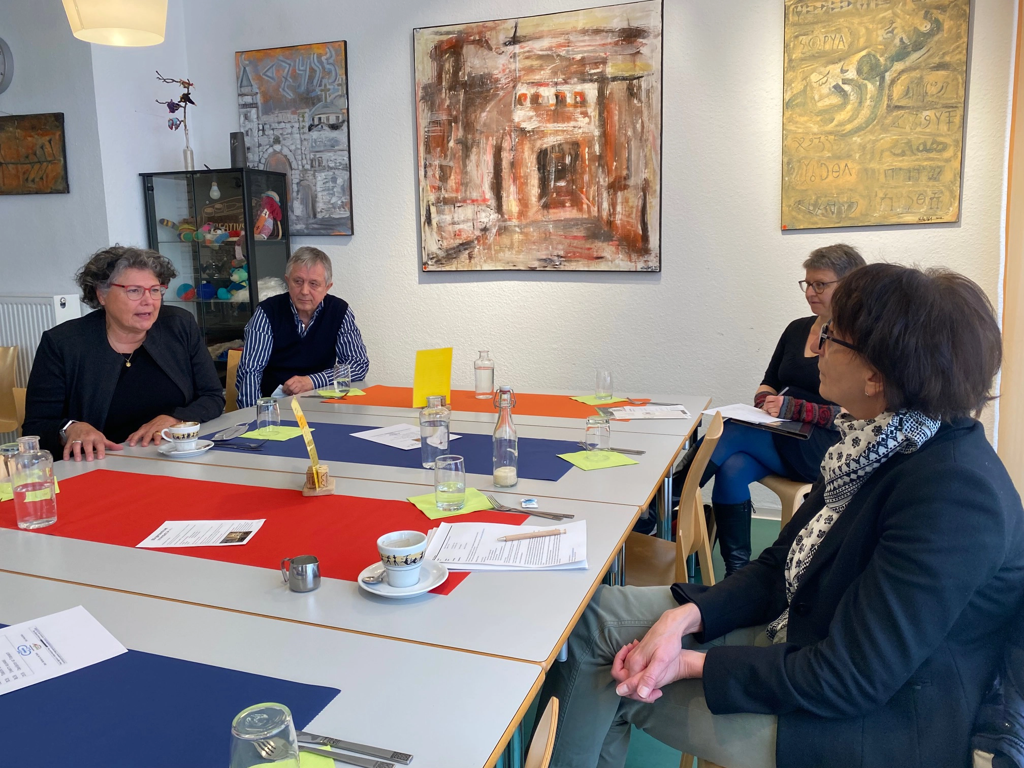 Diese vielfältigen und interessanten Entwicklungen nahm Dr. Ute Leidig, Mitglied des Landtages von Baden-Württemberg und Staatssekretärin im Ministerium für Soziales, Gesundheit und Integration, zum Anlass, um bei einem Besuch vor Ort die Einrichtung besser kennenzulernen. Monika Storck, Vorsitzende des AWO Kreisverbands Karlsruhe-Stadt e.V., Markus Barton, Geschäftsführer der AWO Karlsruhe gemeinnützige GmbH, sowie Klaus Lustig und Joachim Unser-Nad, Mitarbeiter des Bürgerzentrums, nahmen sie dort gerne in Empfang und tauschten sich über aktuelle Entwicklungen und zukünftige Perspektiven aus.