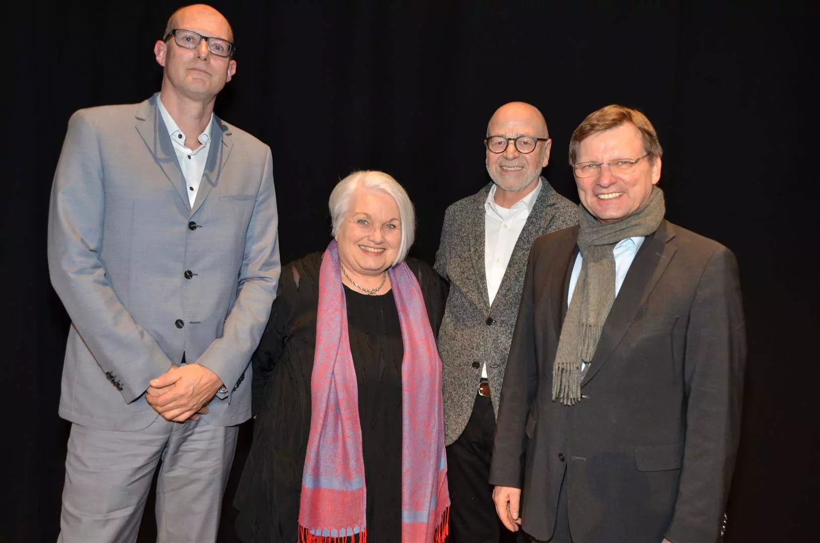 Für Gustav Holzwarth (zweiter von rechts), Geschäftsführer der AWO Karlsruhe gemeinnützige GmbH, beginnt ab Januar 2018 ein neuer Lebensabschnitt. Dies nahm die AWO Karlsruhe zum Anlass, um sich am 11.12.2017, im Rahmen einer großen Feier im Tollhaus, von ihrem langjährigen Geschäftsführer zu verabschieden. Im Beisein von 260 Gästen aus den Reihen der Stadt Karlsruhe, Kooperationspartnern aus der freien Wirtschaft, den verschiedenen Wohlfahrtsverbänden und der AWO ließ man zusammen nochmal die erfolgreichsten Stationen seines Wirkens Revue passieren. Angela Geiger (zweite von links) betonte in ihrer Laudatio: „Ich möchte Dir ganz aufrichtig und herzlich für Deine hervorragende Arbeit danken. Als langjähriger Geschäftsführer und mit insgesamt über 37 Jahren Führungsverantwortung hast Du maßgeblich zum Erfolg und der positiven Entwicklung der AWO Karlsruhe beigetragen.“ Von 1986 bis Mai 2006 war Gustav Holzwarth Leiter des Ferienwerks, vom Haus der Familie, der Sozialpädagogischen Familienhilfe, dem Programm Mutter und Kind und drei Kitas, deren kontinuierlichen Ausbau er bis zur aktuell 18. Kita aktiv vorangetrieben hat, im Jahr 2006 übernahm er schließlich die Geschäftsführung. „Dabei kamen ihm seine fachliche Kompetenz, seine Beharrlichkeit, sein Durchsetzungsvermögen aber auch seine freundliche, ruhige, offene und warmherzige Art zugute“, so Angela Geiger zum Abschluss. Diesem großen Lob schlossen sich Dr. Martin Lenz, Sozialbürgermeister der Stadt Karlsruhe und Klaus Dahlmeyer (rechts im Bild), Geschäftsführer des AWO Bezirksverbands Baden e.V. in ihren Reden an. Im Rahmen seiner Abschiedsfeier stellte Gustav Holzwarth den anwesenden Gästen auch seinen Nachfolger Markus Barton (links im Bild) vor, der ab dem 01.01.2018, der neue Geschäftsführer der AWO Karlsruhe sein wird.