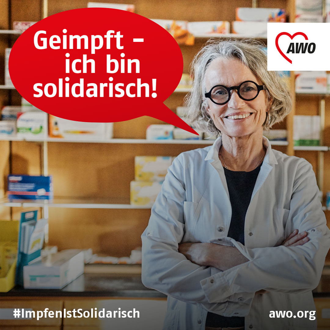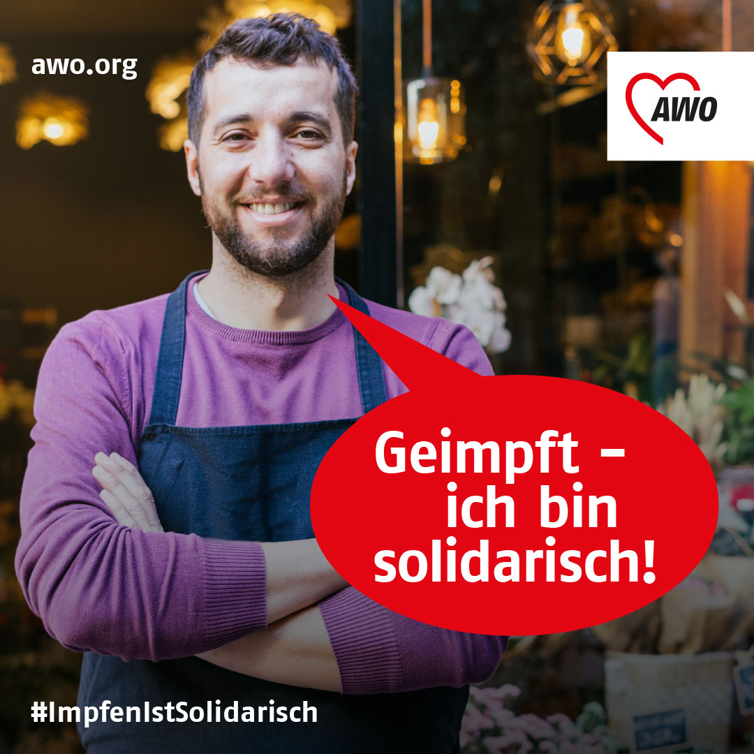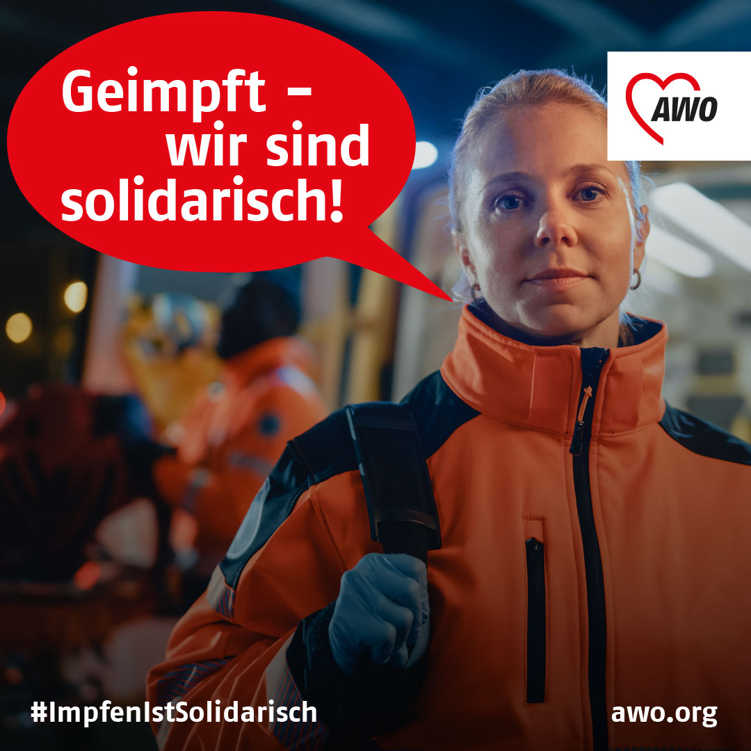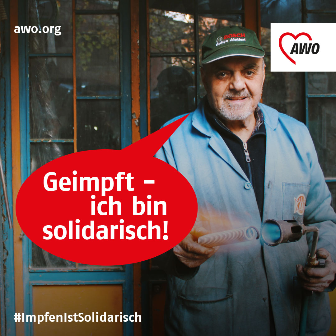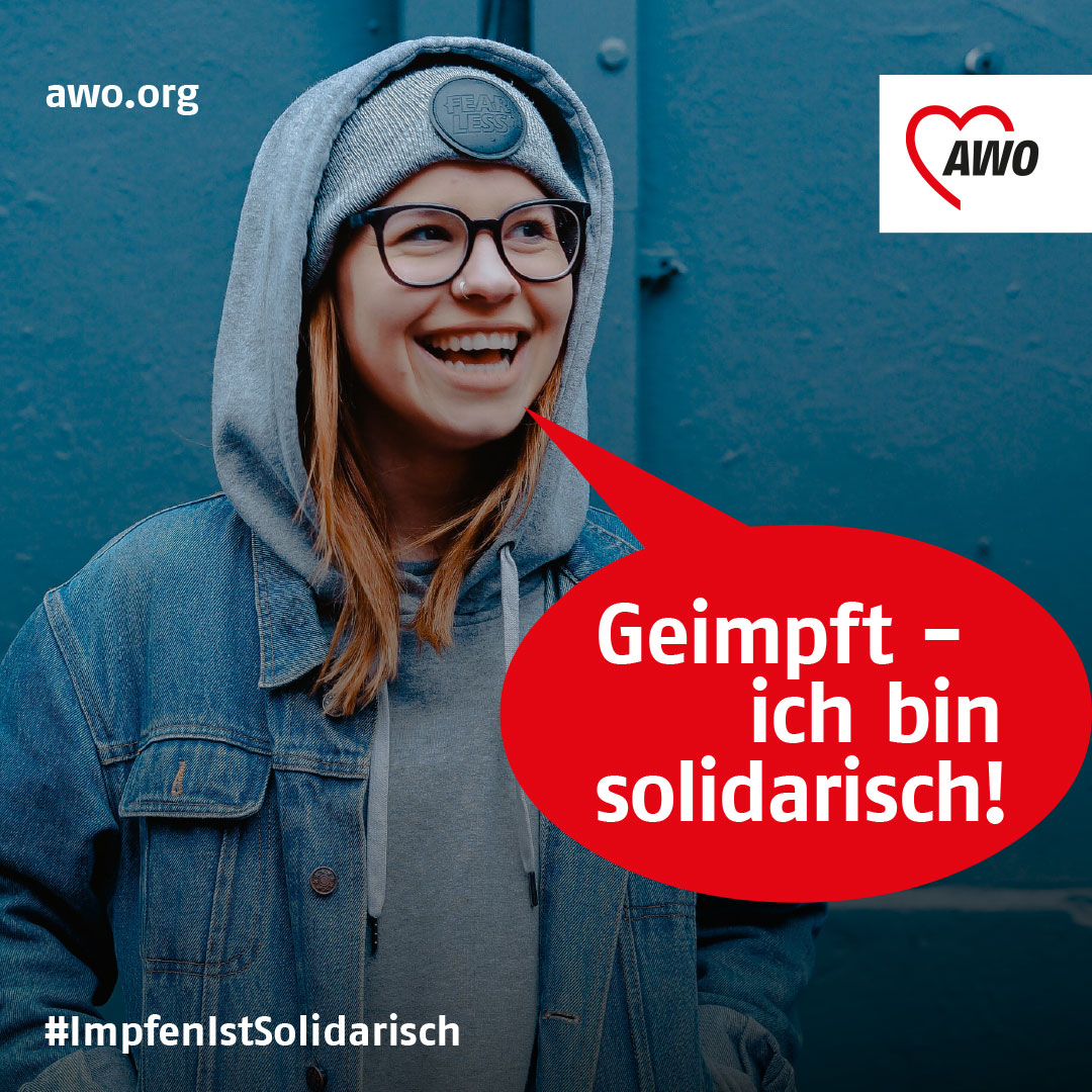 Die AWO-Kampagne „Impfen ist gelebte Solidarität“ unterstützt nachdrücklich die Impfkampagnen des Bundes und der Länder. Die AWO ruft dazu auf, sich impfen zu lassen sowie andere zu einer Impfung zu motivieren oder zu befähigen, um gemeinsam den Ausweg aus der Pandemie zu ebnen. Außerdem wollen wir ein sichtbares Statement setzen gegen gewalttätige Auseinandersetzungen auf der Straße zum Thema sowie der Instrumentalisierung der Impfung durch rechte Akteur*innen.