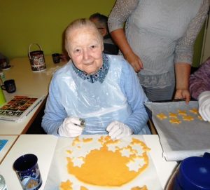 Am Mittwoch wurde dann unsere „Weihnachtsbäckerei“ in der Tagespflege eröffnet. Der Ofen wurde vorgeheizt, der Teig nochmals durchgewalkt und die Ausstechförmchen geschwungen. Danach wurden noch bei bester Laune die kleinen Meisterwerke verziert, denn Plätzlebacken gehört einfach zur Weihnachtszeit dazu. Mit Freude sehen wir unserer großen Weihnachtsfeier, die kommenden Donnerstag stattfinden wird, entgegen.
