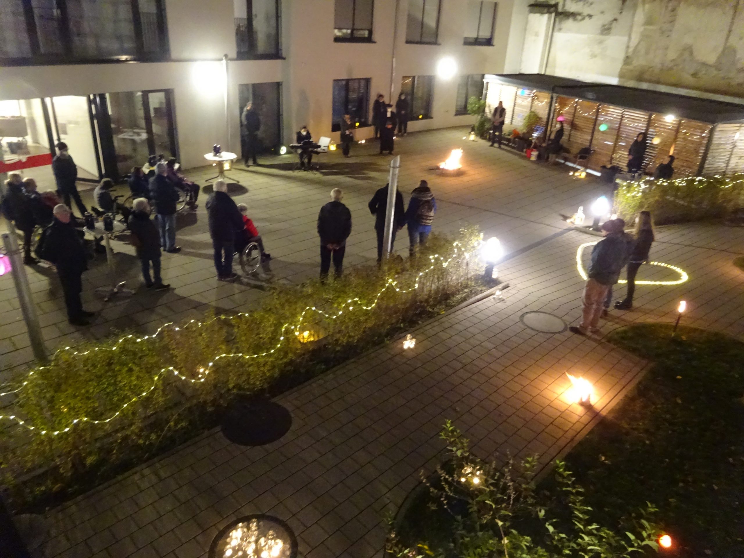Mit einer berührenden Lichtfeier gedachten die Bewohner*innen, Mitarbeiter*innen und Angehörige im Seniorenzentrum Anna Leimbach Haus der verstorbenen Senior*innen der letzten Monate. Ein Meer aus Kerzen, Fackeln, Schwedenfeuer und einer Feuerschale ließen den Garten des Anna Leimbach Hauses in einen würdevollen Rahmen erscheinen. Pfarrer Abraham fand tröstende und hoffnungsvolle Worte. Die musikalische Begleitung der Feier übernahm mit festlichen Stücken die Musikschule Ito-Angele. Wir bedanken uns bei allen Helfern, insbesondere bei der Jugendfeuerwehr Durlach.