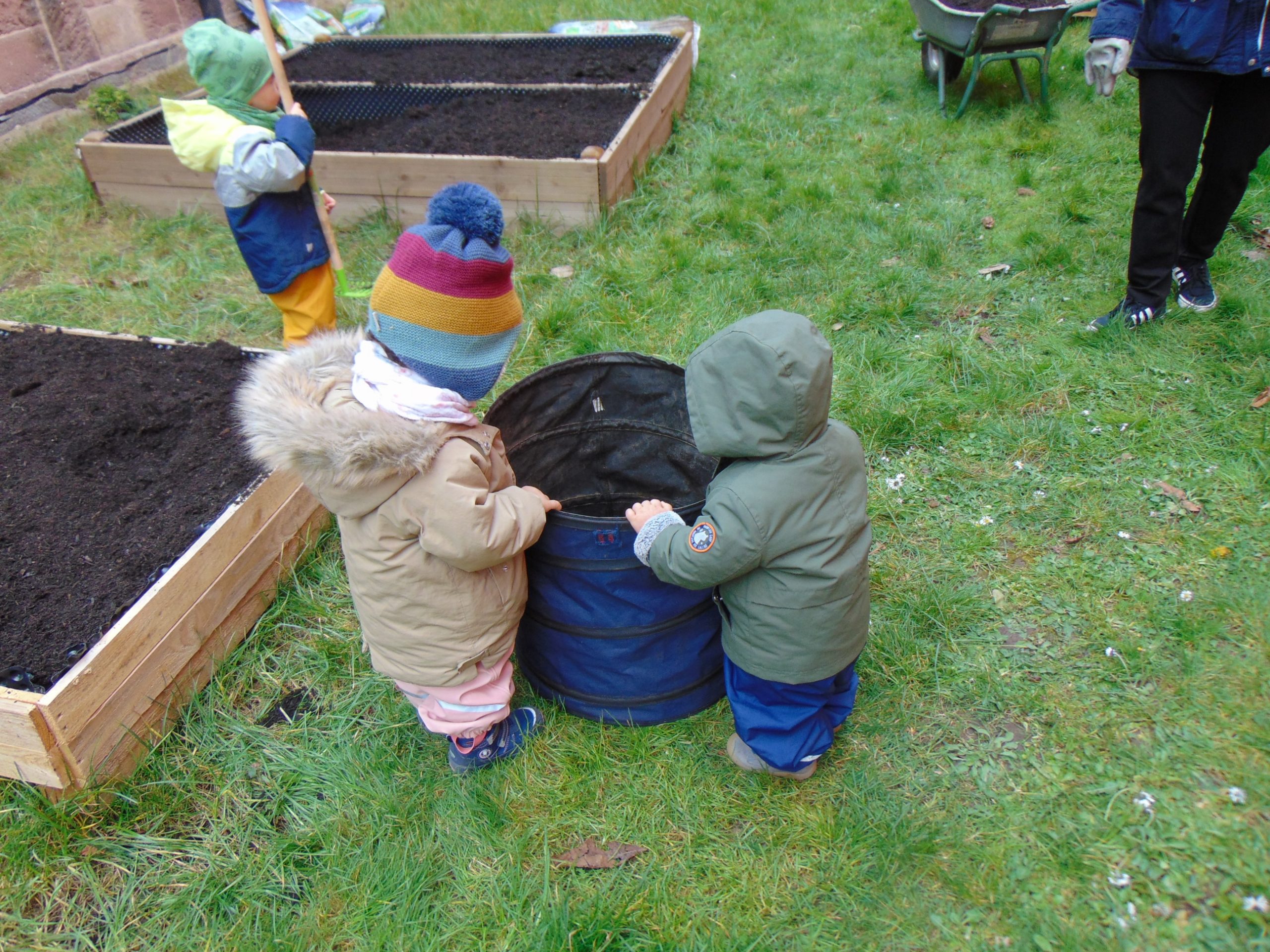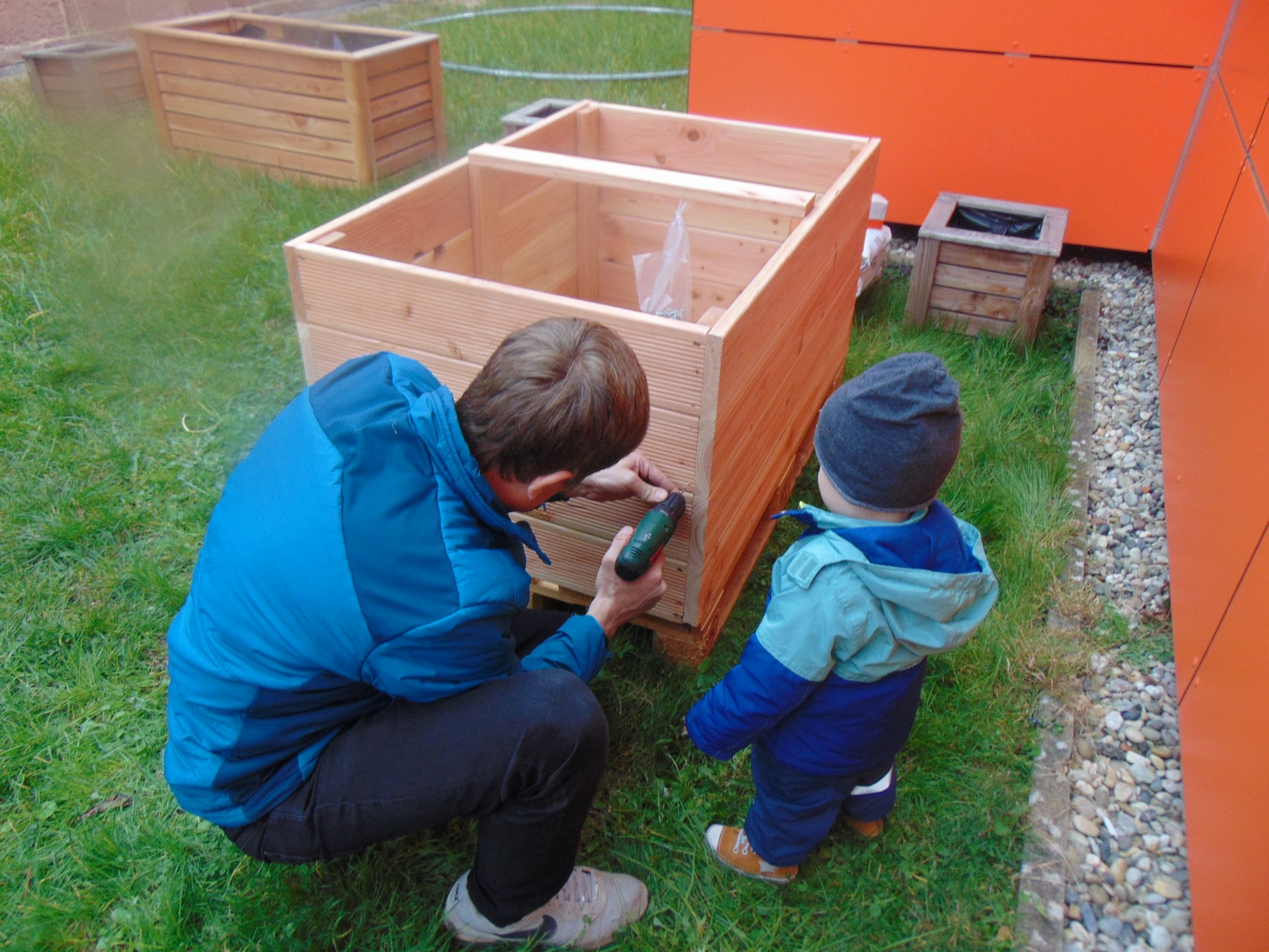 Im Januar freute sich unsere Kita Klinikzwerge über eine großzügige Spende der VR Bank: ein neues Hochbeet! Gemeinsam mit den Eltern wurde das Beet aufgebaut und bepflanzt. Mit Hilfe der Kinder wurden Rindenmulch, Kompost und Blumenerde eingefüllt und die ersten Pflanzen vorgezogen. Wenn das Wetter mitspielt, können bald die ersten Ernten eingefahren werden. Aber nicht nur das Hochbeet wurde neu gestaltet, auch eine Insektenecke ist seit Ende März im Aufbau. Insekten spielen in der Natur eine wichtige Rolle und sind nicht nur nützlich, sondern auch faszinierend anzusehen. Deshalb möchte das Kita-Team den Insekten im Garten einen Rückzugsort bieten. Dank der Unterstützung einiger Eltern und der beiden Bundesfreiwilligendienstlerinnen Frau Fischer und Frau Leger hat das Team begonnen, eine Insektenecke zu gestalten.