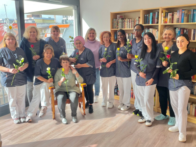 In unserem Seniorenzentrum Anna Leimbach Haus wurde der Weltfrauentag mit einer herzlichen Aufmerksamkeit gefeiert. Einrichtungsleitung Raja Sivandra überreichte den Mitarbeiterinnen des Hauses jeweils eine Rose und bedankte sich damit für ihr tägliches Engagement in Pflege, Betreuung, Hauswirtschaft und Organisation.