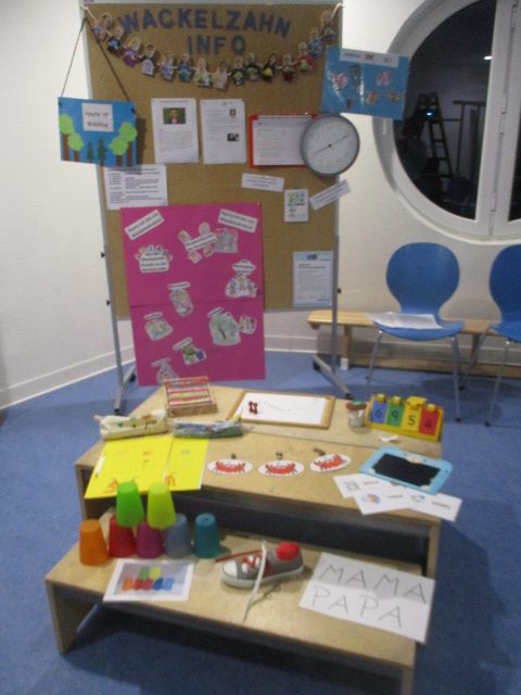 Unsere neue Wackelzahngruppe startete schon im September mit ihren ersten Aktivitäten: der Wackelzahn für die Stellwand wurde ausgeschnitten und die Fotos gemacht. Für die Angebote benötigen die Kinder Ihre Mäppchen, die sie bemalten und mit wichtigen Utensilien füllten. Es folgten die Waldtage und der erste Besuch des SSC mit dem Pfiffix -Sportprogramm. Darüber gab es einiges zu berichten und einige Fotos anzuschauen.