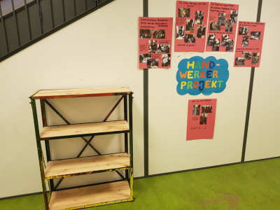 Viel zu schnell verging der erste Vormittag und die Kinder freuten sich bereits auf den zweiten Teil. Hier besuchten uns dann eine Handwerkerin und ein Handwerker in Begleitung der Bildungsreferentin und es konnte losgehen: Das neue Kitaregal wird gebaut!