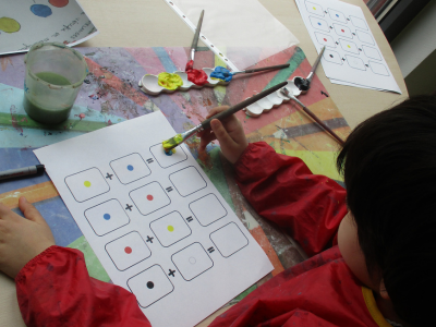 Die Vorschüler*innen aus unserer Kita am Haydnplatz sind konzentriert bei der Sache. Heute steht für sie eine besondere Aufgabe auf dem Programm: In Form einer Lernwerkstatt dürfen sie eigenständig und in Ruhe verschiedene Aufgaben zum Thema „Farbenlehre“ bearbeiten. Diese pädagogische Methode in Kindertageseinrichtungen hat mehrere positive Effekte: Sie fördert nicht nur die Konzentration der Kinder, sondern auch ihr Problemlösungsverhalten und eigenverantwortliches Denken und Handeln. Zudem stärkt sie das Miteinander. Die Kinder achten aufeinander und warten geduldig, bis eine Station frei wird, um dort ihre Aufgabe zu lösen.