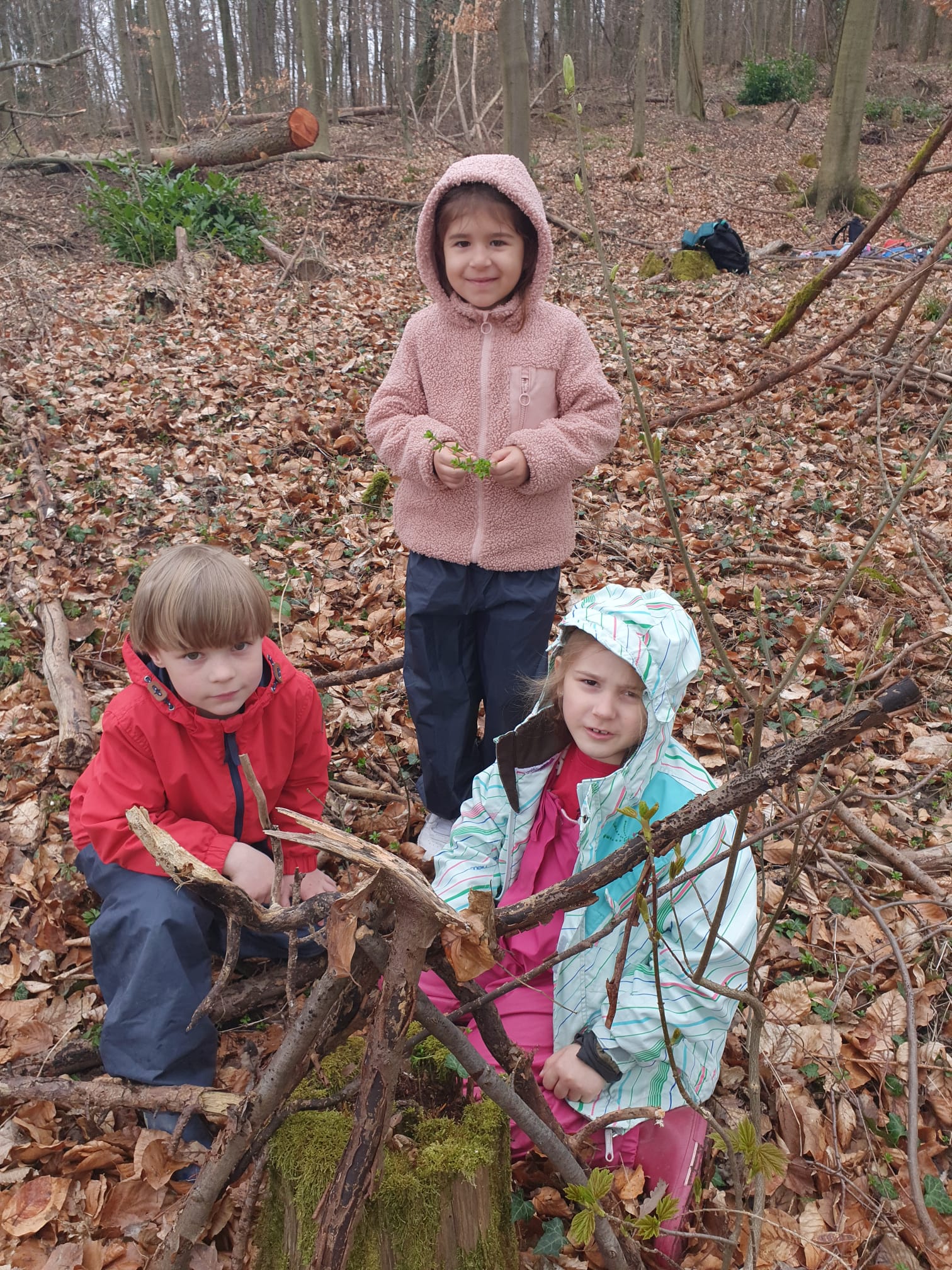 Ende März fuhren die Vorschulkinder aus unserer Kita les explorateurs mit der Straßenbahn zu einem Waldabenteuer nach Wolfartsweier. Dort erwartete sie eine erfahrene Waldpädagogin, die sie auf ihrem Weg durch den Wald begleitete.