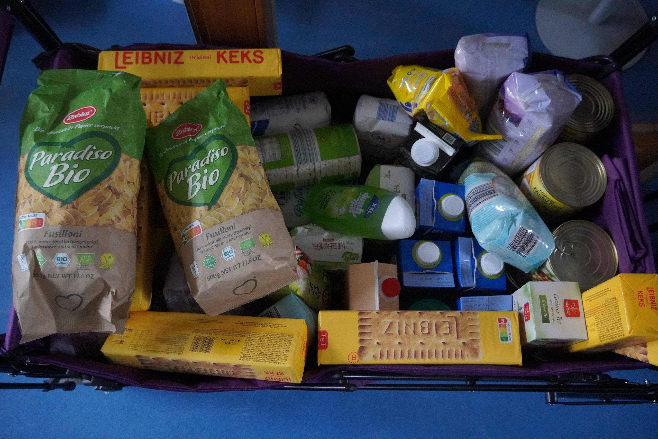 Mit dem Geld sollten Lebensmittel und Drogerieartikel für die Beiertheimer Tafel besorgt werden. In der letzten Woche vor Weihnachten machten sich unsere Kolleg*innen mit einer kleinen Gruppe von Kindern auf den Weg für einen Einkauf in den nahegelegenen Supermarkt. Mit den dort erstandenen Waren konnten sie einen ganzen Bollerwagen füllen!