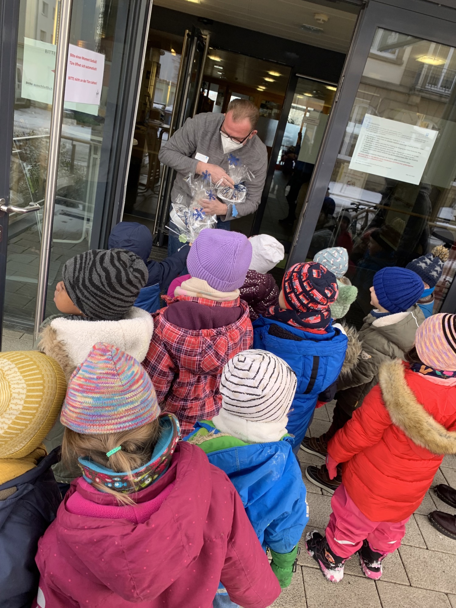 Gesagt-getan! Alle machten sich motiviert ans Werk. Im Nu waren die selbst gebackenen Plätzchen auf kleinen Adventstellern verpackt und im Bollerwagen deponiert. Zwei unserer Kolleg*innen machten sich mit einer Kinderschar auf den Weg und gaben die Weihnachtskekse samt selbst gemalter Bildchen im Pflegeheim ab. Die Einrichtungsleitung des Hauses Karlsruher Weg bedankt sich ganz herzlich bei den Kindern und den Mitarbeiter*innen der AWO-Kita Pamina. Sie haben den Bewohner*innen der Einrichtung eine große Freude damit gemacht.