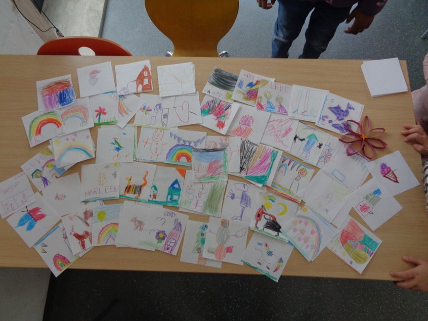 In der AWO-Kita Pamina haben die Kinder in den vergangenen Wochen Plätzchen gebacken. Die ließen sie sich nach dem Singen von Weihnachtsliedern beim Adventsvesper in den weihnachtlich dekorierten Gruppenräumen schmecken. Da noch ein paar Backzutaten übrig waren, kam eine unserer Kolleg*innen auf die Idee, noch mehr Kekse zu backen, um sie den Senior*innen aus dem Pflegeheim Haus Karlsruher Weg zu bringen. Die Kinder malten dazu viele bunte Bilder, die sie dazu schenken wollten.
