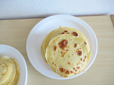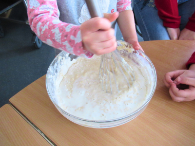 In unserer Kindertagesstätte haben die pädagogischen Fachkräfte gemeinsam mit den Kindern den Teig für die Crêpes zubereitet. Dabei wurde fleißig Mehl abgewogen, Milch abgemessen, Eier aufgeschlagen und der Teig von Hand gerührt. Ganz nebenbei konnten die Mädchen und Jungen mathematische Grundlagen erlernen und ihre Feinmotorik schulen. Das Einfüllen des Teigs in die kleinen runden Vertiefungen der Crêpes-Party-Geräte erforderte Geschicklichkeit von den Kindern, und geduldig warteten sie, bis die kleinen Pfannkuchen fertig gebacken waren. Beim Vesper schmeckten sie allen sehr gut.