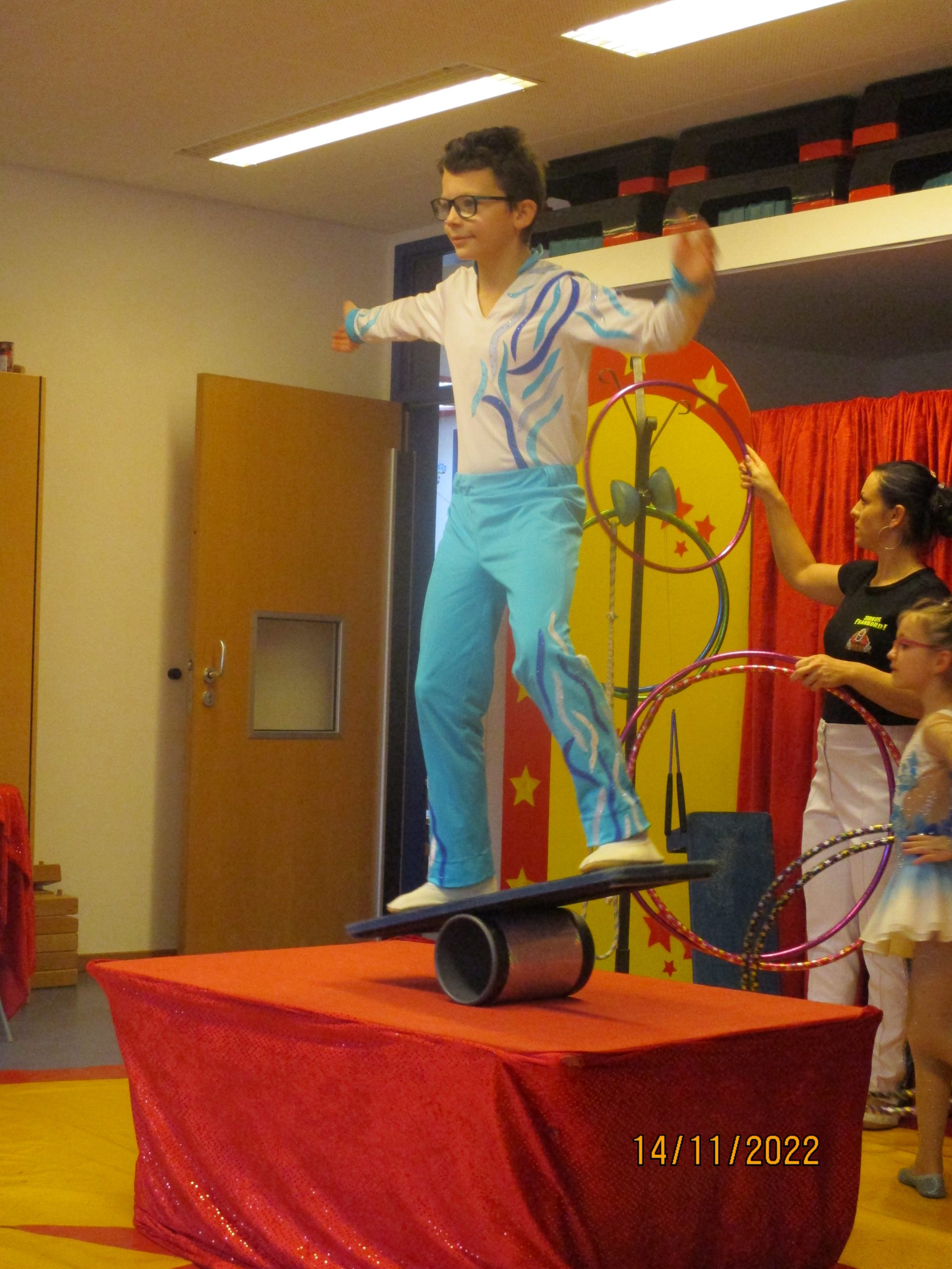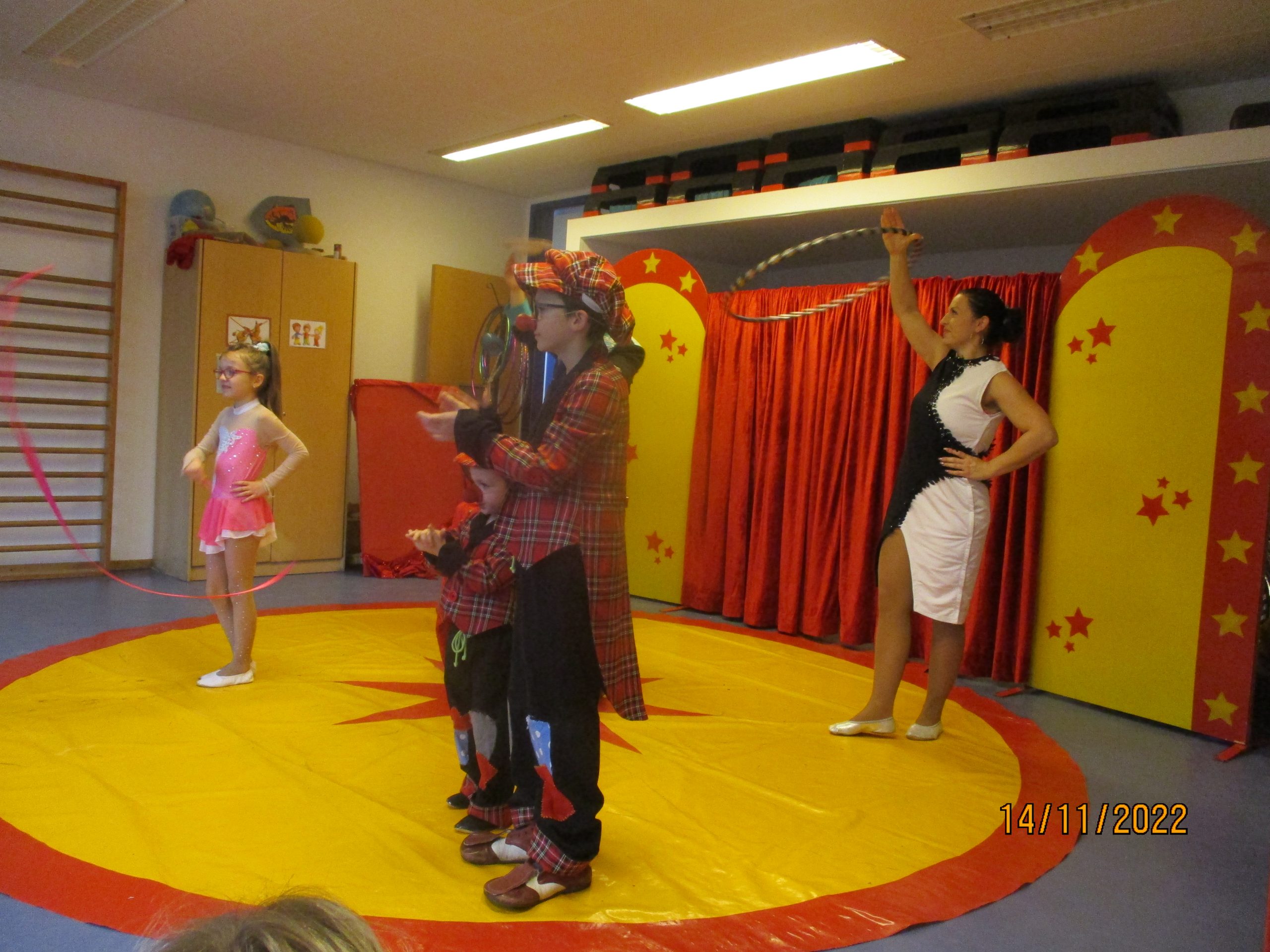 Vorhang auf und Manege frei hieß es am 14.11.2022 für die Kinder in der Kita Windrad, denn der Zirkus Frankordi besuchte die Kita zu einer ganz privaten Vorstellung. Der Zirkus Frankordi – das ist die Familie Frank – mir Ricardo und Jenni sowie den Nachwuchsartisten Jason, Naomi und Joel. Gemeinsam gaben sie viele Kunststücke und Akrobatik zum Besten. Der geheime Star der Vorstellung war aber der kleine Hund der Familie, der mutig durch einen Reifen sprang! Viel Applaus und freudiges Kinderlachen ertönten in der 45-minutigen Vorstellung im Turnraum. Die Kinder erzählten noch lange vom Hund, dem Clown und der phänomenalen Vorstellung.