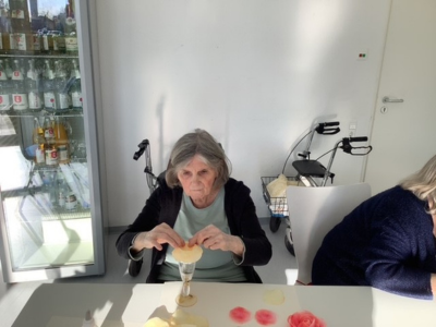 Während draußen alles zu blühen begann, wurde es auch im Haus farbenfroh. Materialien wurden bereitgelegt, Ideen gesammelt und erste Handgriffe ausprobiert. Mit viel Ruhe und Konzentration entstanden nach und nach kleine Blumen. Dabei erinnerten sich einige an frühere Bastel- oder Handarbeitszeiten.