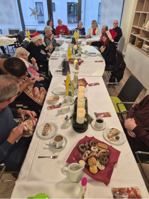 Mit viel Freude hatten die Bewohner*innen zusammen mit dem Betreuungsteam köstliche Weihnachtsplätzchen gebacken, die beim Kaffeetrinken mit sichtlichem Genuss probiert wurden. Es gab eine feierliche Andacht von unserem evangelischen Pfarrer Herrn Weber, die vom Gesangverein GV Frohsinn musikalisch umrahmt wurde. Dies schenkte dem Abend Ruhe und Besinnlichkeit. Beim anschließenden Glühwein klangen bekannte Melodien durch das Haus und ließen viele vertraute Erinnerungen lebendig werden.